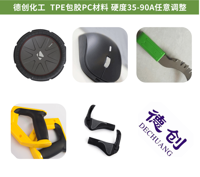 TPE/TPR的強度、耐磨性和防滑性能不如硫化橡膠,使得它的應用領域為一些日用制品,工具五金,電子產品領域。產品應用案例: