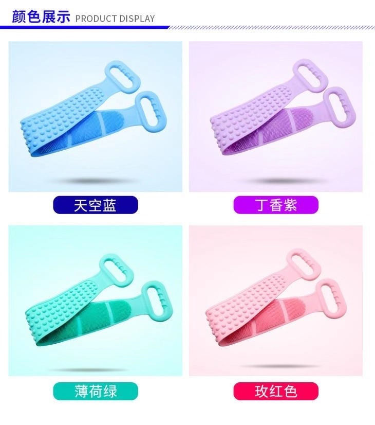 硅膠搓澡巾設(shè)計(jì)成條狀性,健康環(huán)保不含雙酚A等有害物質(zhì),耐高低溫 不易破裂。硅膠搓澡巾,雙面硅膠毛刷;柔軟舒適,輕柔不傷肌膚;柔軟富有彈性。好品質(zhì) 才有好生活。拉手設(shè)計(jì) 手握舒服 輕松搓后背,搓出牛奶般美背。掛孔設(shè)計(jì) 收納方便。消除疲勞 毛刷背面是與橢圓形設(shè)計(jì),你的私人按摩師 反面凸起按去您一身疲勞。千根硅膠刷毛層層清潔讓污垢無(wú)處容身360°來(lái)回深層清潔,搓背按摩不求人。硅膠洗澡刷搓澡好幫手。雙面功能 雙向選擇 刷毛面氣泡搓澡,半球面按摩,沐浴更簡(jiǎn)單。